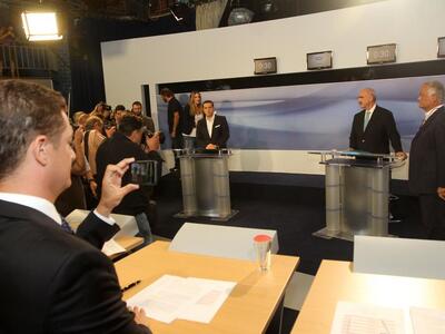 Οι δύο πολιτικοί αρχηγοί θα καθίσουν δίπλα- δίπλα, ενώ απέναντί τους βρίσκονται οι ίδιοι δημοσιογράφοι που υπέβαλαν τις ερωτήσεις και στο προηγούμενο debate και είναι οι: Όλγα Τρέμη (MEGA), Μαρία Χούκλη (ΑΝΤ1), Αντώνης Σρόιτερ (ALPHA), Σία Κοσιώνη (ΣΚΑΙ), Μάρα Ζαχαρέα (STAR), Μάκης Γιομπαζολιάς (ΕTV).