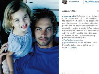 Η 16χρονη Μίντοου Γουόκερ, απέτισε φόρο τιμής στον αδικοχαμένο πατέρα της, ιδρύοντας τον οργανισμό με όνομα «The Paul Walker Foundation».