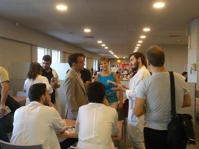 Ο Κώστας Λαπαβίτσας συναντήθηκε με ομάδα καθαριστριών και ενημερώθηκε για τα προβλήματα στην εργασία τους. Στην συνέχεια στο κυλικείο του νοσοκομείου συνάντησε ομάδα φοιτητών Ιατρικής με τους οποίους αντάλλαξε απόψεις και εξήγησε πλευρές του προγράμματος της Λαϊκής Ενότητας. Μεταξύ των νέων επιστημόνων διάχυτος ήταν ο προβληματισμός για την πιθανή υποχρεωτική μετανάστευση τους στο εξωτερικό. Σύντομη συνάντηση γνωριμίας έγινε με τον Διοικητή του ΠΓΝΠ κ. Μπονάνο.