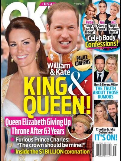 «Φωτιά» έβαλε ένα δημοσίευμα του περιοδικού «Οκ!», το οποίο ανέφερε ότι ο πρίγκιπας Γουίλιαμ και η Κέιτ Μίντλετον σε μερικούς μήνες θα στεφθούν βασιλιάς και βασίλισσα της Μεγάλης Βρετανίας.