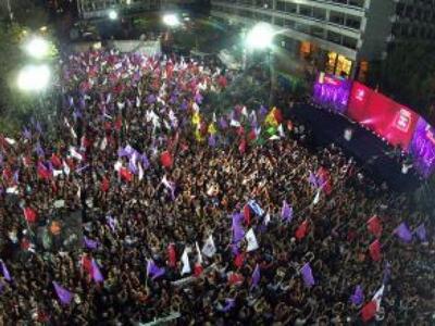 Με το γνωστό προεκλογικό του σύνθημα «ο ΣΥΡΙΖΑ είναι εδώ και την Κυριακή ξεμπερδεύουμε με το παλιό» ξεκίνησε ο Αλέξης Τσίπρας την κεντρική του προεκλογική ομιλία στο Σύνταγμα. Ο αγώνας μας δεν θα είναι μία παρένθεση και αυτή τη φορά θα συνεχίσουμε την προσπάθεια για μία ολόκληρη 4ετία να αλλάξουμε την χώρα μας, είπε ο πρόεδρος του ΣΥΡΙΖΑ.