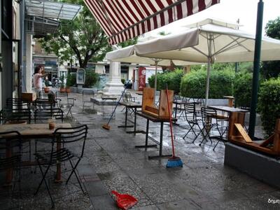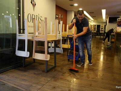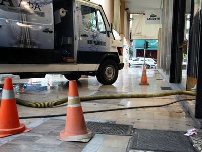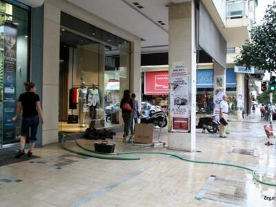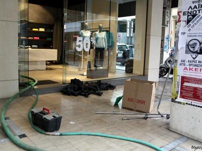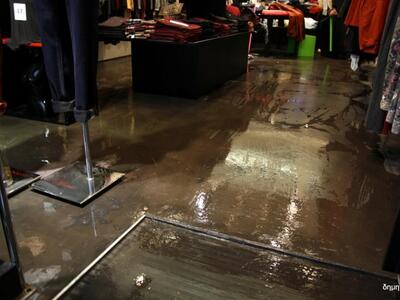 Οι εικόνες αυτές σίγουρα δεν είναι πρωτοφανείς αλλά οι καταστηματάρχες δεν περίμεναν ότι με την πρώτη νεροποντή θα έβλεπαν τα καταστήματά τους να πλημμυρίζουν.