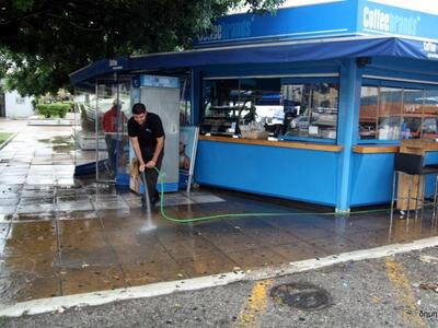 Εξάλου με το πρώτο πρωινό φως οι παρενέργεις της χθεσινής καταιγίδας ήταν εμφανείς από άκρη σε άκρη της πόλης. (Πάτρα: Το τρένο έκοψε ταχύτητα για να μην πέσει στα μποτιλιαρισμένα αυτοκίνητα - Μπάρα έπεσε σε λεωφορείο - ΔΕΙΤΕ ΕΙΚΟΝΕΣ & ΒΙΝΤΕΟ), ενώ μέχρι και ο πεζόδρομος της Ρήγα Φεραίου ..ανατινάχθηκε. (Πάτρα: "Ανατινάχθηκε" ο πεζόδρομος της Ρήγα Φεραίου - Ξηλώθηκε το πλακόστρωτο - ΦΩΤΟ)