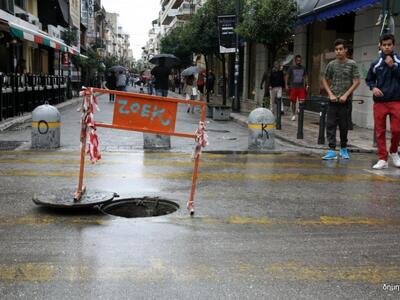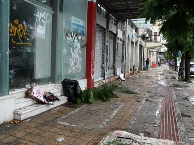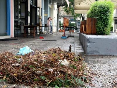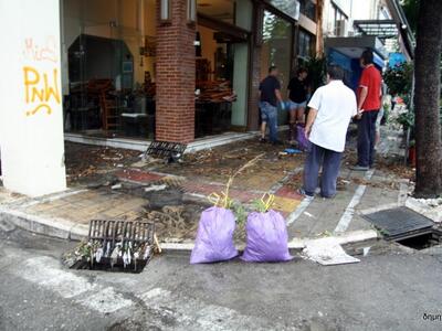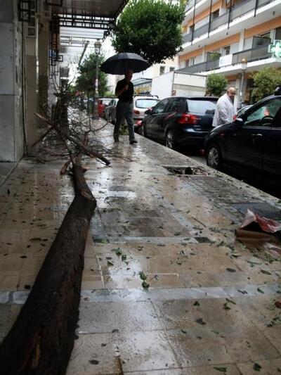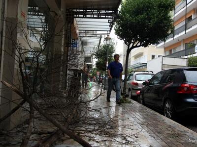 Ακόμα και κορμοί δέντρων έπεσαν, βουλωμένα φρεάτια, πλημμυρισμένα καταστήματα, δρόμοι, πλατείες