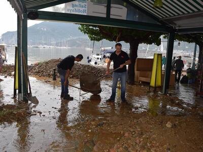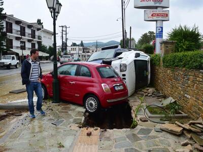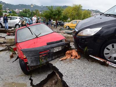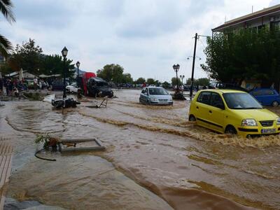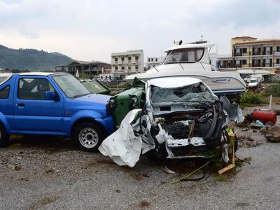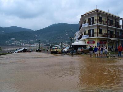 Η καταρρακτώδης βροχή προκάλεσε ρήγματα στο λιμάνι, παρέσυρε και κατέστρεψε δεκάδες οχήματα, ενώ από το βραχυκύκλωμα στα δίκτυα το νησί έμεινε χωρίς ρεύμα. Η Πυροσβεστική δέχτηκε εκατοντάδες κλήσεις για άντληση υδάτων από πλημμυρισμένα σπίτια, ενώ χθες, με απόφαση του δημάρχου δεν άνοιξαν τα σχολεία. Έντονος είναι ο φόβος μήπως στα αυτοκίνητα που παρασύρθηκαν στη θάλασσα υπάρχουν εγκλωβισμένα άτομα.