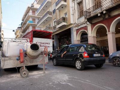 Τι κι αν είναι Παρασκευή μεσημέρι στο κέντρο της Πάτρας, με την κυκλοφοριακή κίνηση να κάνει αφόρητη τη ζωή των οδηγών. Μια μπετονιέρα σταθμεύει σε ένα από τα πιο κεντρικά σημεία της πόλης, στη διασταύρωση των οδών Αγίου Νικολάου και Κορίνθου.