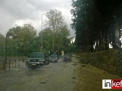Η δυνατή νεροποντή που ξεκίνησε στις τρεις το μεσημέρι, όπως αναφέρει το inkefalonia.gr, κατάφερε μέσα σε λίγα λεπτά να μετατρέψει τους δρόμους σε ορμητικά ποτάμια που παρέσυραν στο διάβα τους αυτοκίνητα, τραπέζια, καρέκλες και ότι άλλο έβρισκαν μπροστά τους.