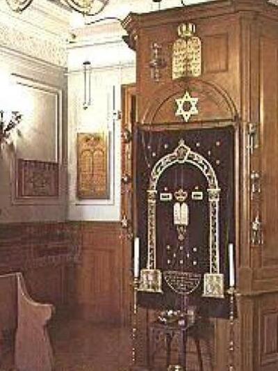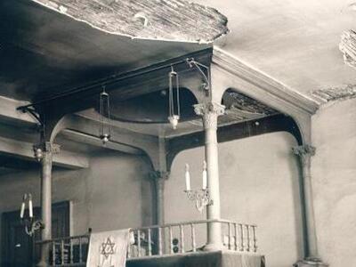 Η "τεβά" (χώρος της Συναγωγής απ΄ όπου αναγιγνώσκεται η Τορά) της Συναγωγής Πάτρας πριν από την κατεδάφιση