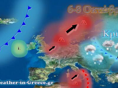 Το διάστημα 6-8 Οκτώβρη που βλέπετε στους χάρτες θα είναι το διάστημα κυρίως Τετάρτη-Πέμπτη με την άνοδο της θερμοκρασίας ενώ από την Παρασκευή και μετά αλλά και το Σαββατοκύριακο (9-11 Οκτώβρη)η Ελλάδα θα χωριστεί στα 2 δηλαδή μια σχετικά ζεστή για την εποχή νότια νησιωτική και ηπειρωτική χώρα και μια πιο ψυχρή βόρεια Ελλάδα.