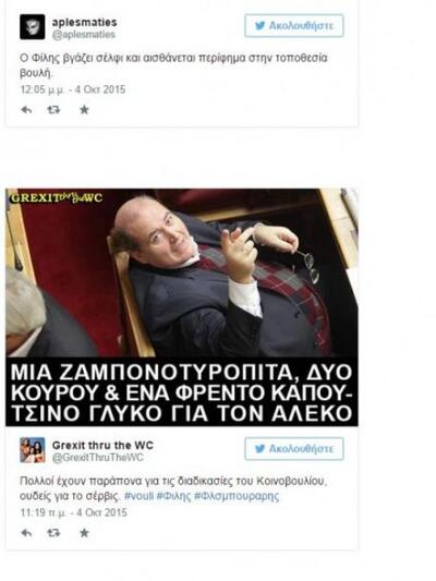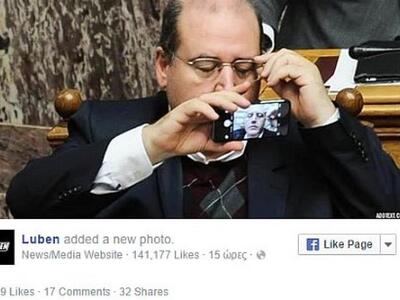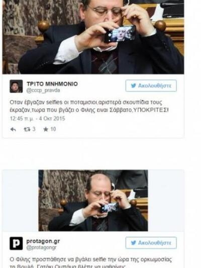 «Φωτιά» πήρε το twitter με αφορμή την προσπάθεια του Νίκου Φίλη να βγάλει selfie από τα υπουργικά έδρανα της Βουλής.