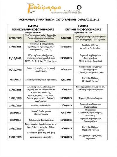 - Τμήμα Παρασκευής 19-21:00, με θέμα την κριτική της φωτογραφίας.