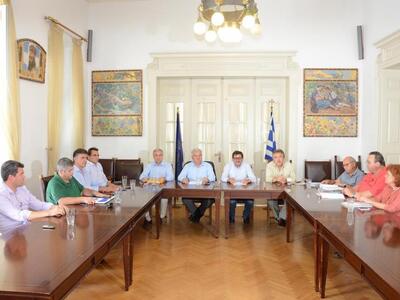 Κοινή σύσκεψη των Δημάρχων της Περιφερειακής Ενότητας Αχαΐας με θέμα τη διαχείριση των απορριμμάτων πραγματοποιήθηκε στο Δημαρχείο της Πάτρας σήμερα το μεσημέρι. Συμμετείχαν ο Δήμαρχος Πατρέων Κώστας Πελετίδης και οι Δήμαρχοι Αιγιαλείας Αθανάσιος Παναγόπουλος, Δυτικής Αχαΐας Χρήστος Νικολάου, Ερυμάνθου Θάνος Καρπής και Καλαβρύτων Γεώργιος Λαζουράς.