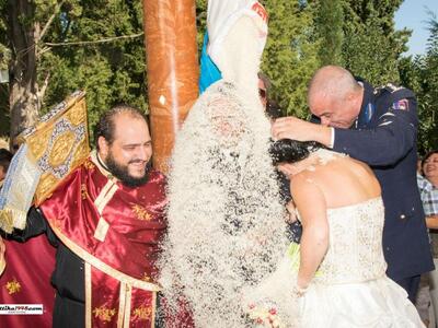 Η τελετή του γάμου έγινε με κουμπάρους τον υποστράτηγο του Πυροσβεστικού Σώματος Βασίλη Φλόκα και την κα Κατερίνα Φλόκα και την ώρα του "Ησαΐα χόρευε", οι συνάδελφοι του γαμπρού στην κυριολεξία 'έλουσαν' με ρύζι το ζευγάρι, καθώς είχαν φέρει μαζί τους ολόκληρα τσουβάλια. Ακολούθησε η βάπτιση του γιου τους με νονά τη Δήμητρα Μαγούλη κι ο οποίος πήρε το όνομα Βασίλης.
