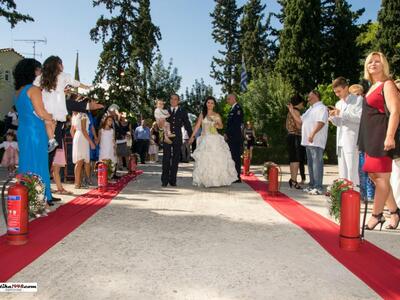 Ο λόγος για το γάμο του πυροσβέστη Γιώργου Μαγούλη και της αγαπημένης του Ξένιας Μπουμπουρίδου, την Κυριακή στον Ι.Ν. Αγίου Γεωργίου Ροδοδάφνης, ο οποίος ήταν γεμάτος πρωτότυπα και διασκεδαστικά σκηνικά και με έντονο το στοιχείο της πυροσβεστικής.