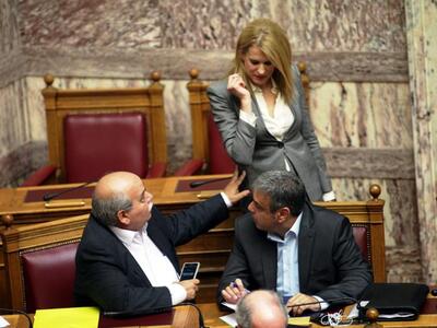 Ένα θερμότατο το χειροφίλημα επιφύλαξε ο πρόεδρος της Βουλής Νίκος Βούτσης στην πρώην υπουργό των κυβερνήσεων του ΠΑΣΟΚ και σήμερα υφυπουργό Βιομηχανίας της κυβέρνησης ΣΥΡΙΖΑ – ΑΝΕΛ, Θεοδώρα Τζάκρη.