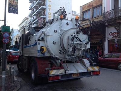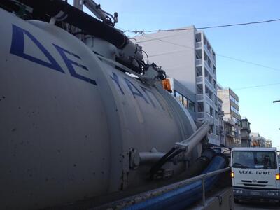 Σήμερα δύο οχήματα της ΔΕΥΑΠ στάθμευσαν στη συμβολή των οδών Ερμού και Αγ. Ανδρέου. Στόχος των συνεργείων, να βρουν γιατί δεν λειτουργεί αποτελεσματικά το αποχετευτικό δίκτυο κάτω από την Αγ. Ανδρέου.