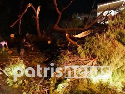 Επίσης στην οδό Κολιρίου τουλάχιστο πέντε δέντρα έπεσαν στον δρόμο και σε αυλές σπιτιών με την Πυροσβεστική Υπηρεσία Πύργου να καλείται να επέμβει σε όλα τα σημεία.