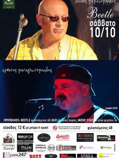 Aυτό το Σάββατο 10 Οκτωβρίου 2015 το βράδυ, στη μουσική σκηνή (μπαράκι) Beetle στην οδό Φιλοποίμενος κοντά στην Κανακάρη, θα βρεθεί ένας αγαπητός Έλληνας τραγουδοποιός και ερμηνευτής, ο Λάκης Παπαδόπουλος (Λάκης με τα Ψηλά Ρεβέρ).