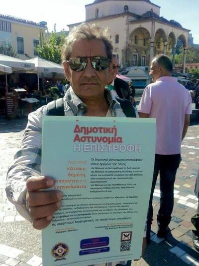 Μαζί με μια ομάδα δημοτικών αστυνομικών μοιράζουν ενημερωτικό υλικό στους πολίτες που αναφέρει τα εξής: