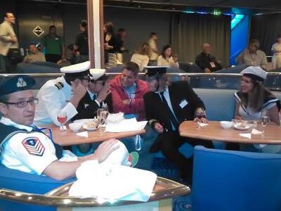 Από τις παρουσίες που κατάφεραν να κλέψουν τα βλέμματα για μια ακόμη φορά αυτή του προέδρου του συλλόγου καταστηματαρχών εστίασης και αναψυχής Πάτρας Γιώργου Κοτοπούλη που φόρεσε το... ναυτικό πηλίκιο κατα την επίσκεψή του στο πλοιο!