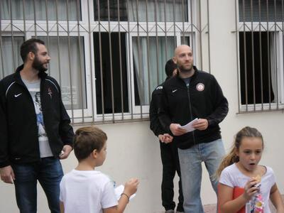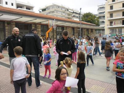 Τέλος οι μαθητές του 64ο Δημοτικού διεξήγαγαν αγώνα με τους αθλητές του Προμηθέα Άγγελο Τσάμη, Φανη Κουμπούρα, Πέτρο Νοέα, Σωκράτη Μαναβόπουλο, και Γιώργο Παπαπέτρου