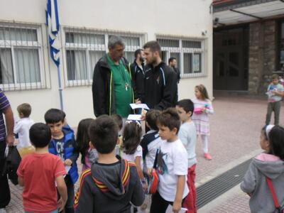 Τους αθλητές και το Γ. Γραμματέα του "ΑΣΠ Προηθέα" Παντελή Αθανασίου υποδέχθηκαν ο Διευθυντής του Σχολείου Νίκος Βεγιάννης και το εκπαιδευτικό προσωπικό.