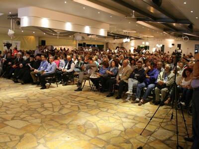 Στη μεγάλη ημι-υπαίθρια σάλα του «Κτήματος Διαμαντή», επικράτησε το αδιαχώρητο, εξ ίσου γεμάτοι ήσαν και οι γύρω χώροι με αποτέλεσμα δύσκολα να ακούγονται οι κατατοπιστικές εισηγήσεις των ομιλητών, κ. Παπρά, κ. Δάβουλου και κ. Γιαλένιου, οι οποίοι κατέβαλαν ιδιαίτερη προσπάθεια για να μεταφέρουν στο κοινό τα ενδιαφέροντα που είχαν να παρουσιάσουν.