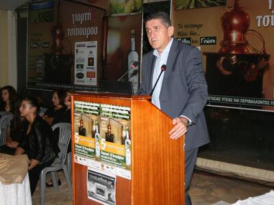 Εκ μέρους των αποσταγματοποιών και ποτοποιών, μίλησε ο χημικός κ. Παν. Χάχαλης τη οινοποιίας «Κάστρο», ο οποίος χαιρέτησε την εκδήλωση, ευχαρίστησε για την πρόσκληση, λέγοντας ακόμα ότι μπορούμε και να συνυπάρξουνε σε μία σχέση συνεργασίας με τους μικρούς παραγωγούς Τσίπουρου, με σκοπό τη βελτίωση ποιότητας του οικιακά παραγόμενου Τσίπουρου, προστατεύοντας την Υγείας και σώζοντας την παράδοση.