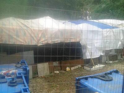Κάποιοι, περιόρισαν τους τετράποδους σε ένα κλουβί στη είσοδο της εσωτερικής διαδρομής του δάσους όπου και τις εντοπίσαμε κουκουλωμένες κάτω από μουσαμάδες και διπλή σειρά περίφραξης.