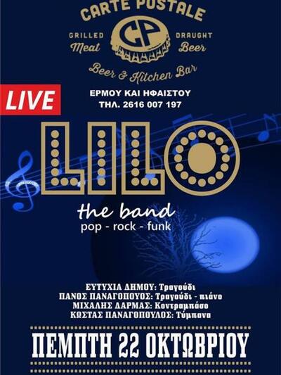 Συγκεκριμένα, αύριο Πέμπτη 22 Οκτωβρίου, στο αγαπημένο στέκι της Ηφαίστου, θα μας περιμένουν οι εξαιρετικοί Lilo the band!