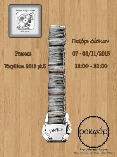 Οι Patras Vinyl Lovers καλούμε όλους τους φίλους του βινυλίου, σε ένα ακόμα μεγάλο διήμερο παζάρι , το Σάββατο 7/11 και την Κυριακή 8/11 στο κέντρο της Πάτρας , στο φιλόξενο Ροκφόρ.