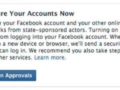 Η ειδοποίηση, αναφέρει: «Πιστεύουμε ότι ο λογαριασμός στο Facebook ενδέχεται να έχει γίνει στόχος επίθεσης. Ενεργοποιώντας το Login Approvals, θα σας βοηθήσει να κρατήσετε μακριά από την είσοδο στο λογαριασμό σας, ανθρώπους που προσπαθούν να παραβιάσουν το λογαριασμό σας. Κάθε φορά που ο λογαριασμός σας ενεργοποιείται από μια διαφορετική συσκευή ή browser, θα σας στέλνουμε έναν κωδικό ασφαλείας στο κινητό σας τηλέφωνο, ώστε να μπορείτε μόνο εσείς να κάνετε log in».