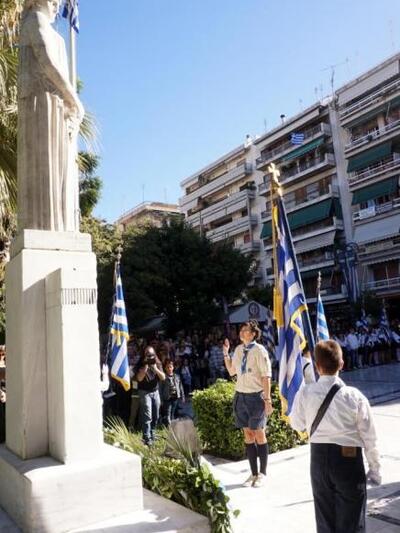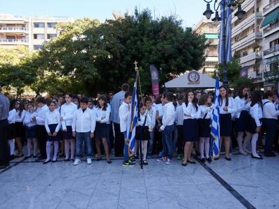 Το πρωί με φροντίδα της Πρυτάνεως του Πανεπιστημίου Πατρών, του Προέδρου του ΤΕΙ, των Διευθυντών των Διευθύνσεων Α/θμιας και Β/θμιας Εκπαίδευσης , των Εφόρων Προσκόπων και Οδηγών, πραγματοποιήθηκε προσκύνημα στο Μνημείο της Ελευθερίας (πλατεία Εθνικής Αντίστασης) από φοιτητές μαθητές των Σχολείων, προσκόπους και οδηγούς προσερχόμενους με επικεφαλής τους καθηγητές, δασκάλους και βαθμοφόρους.
