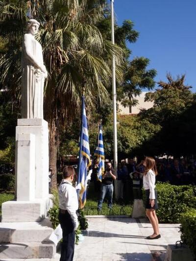 11.30 π.μ. Επιμνημόσυνη Δέηση στο Μνημείο της Ελευθερίας (πλατεία Εθνικής Αντίστασης) όπου θα υπάρχει τιμητική φρουρά από σημαιοφόρους των Λυκείων και Γυμνασίων των Πατρών. Τον πανηγυρικό της ημέρας θα εκφωνήσει Διευθυντής Δημοτικού Σχολείου Πατρών. Κατάθεση στεφάνων, σιγή ενός λεπτού, ανάκρουση του Εθνικού Ύμνου, αποχώρηση σημαιοφόρων και επισήμων.