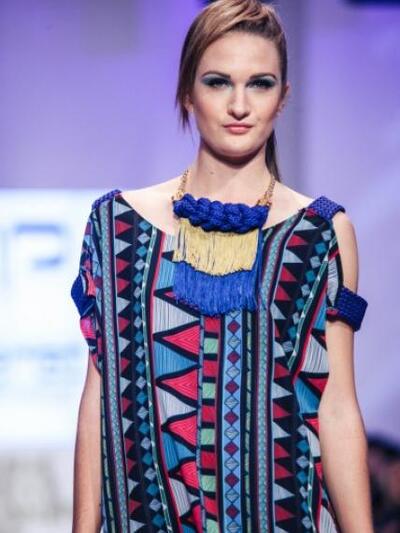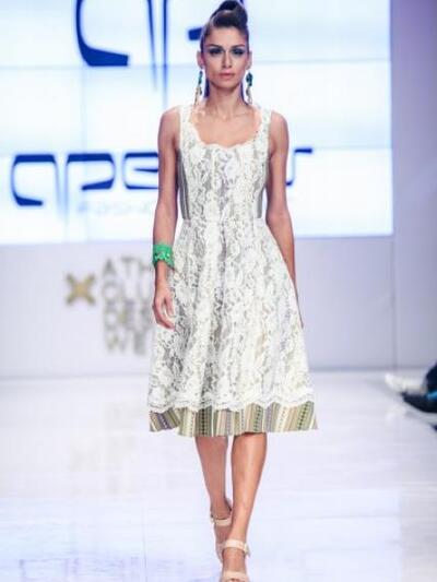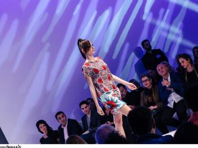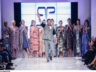 Στο πραγματικά «δροσερό» σόου του, που χειροκροτήθηκε στην AXDW της Αθήνας, την τέταρτη μέρα, γοήτευσαν τα ιδιαίτερα prints με φολκλορικά μοτίβα, λουλούδια, αρτίστικα σχέδια σε μεγάλη χρωματική γκάμα. Τα σύγχρονα χιτώνια Panos Apergis κυμμάτιζαν ελεύθερα γύρω από το σώμα σχηματίζοντας «μύτες». Δεν έλειψαν φορέματα από δαντέλα, πλεγμένα βραχιόλια και κολιέ που παρέπεμπαν σε εργόχειρα και υφαντά. Ακόμα μια φορά ανέβηκε στην πασαρέλα ως μούσα του η όμορφη πατρινή Βασιλική Σταματοπούλου-σύζυγος του αιγιώτη γυμναστή, ηθοποιού και μοντέλου Νίκου Αναδιώτη. Με τα μαλλιά της σε έναν στραβό, περίεργο κότσο και έντονο μακιγιάζ στα μάτια περπάτησε με αυτοπεποίθηση και πλατύ χαμόγελο.