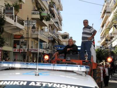 Ειρηνική διαμαρτυρία με τρακτέρ και συνθήματα πραγματοποίησαν στο τέλος της παρέλασης στον Πύργο αγρότες της περιοχής. Οι αγρότες διαμαρτύρονται για τα νέα φορολογικά μέτρα που θα πλήξουν όλο τον κλάδο τους.