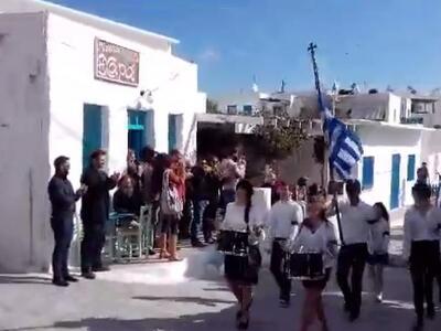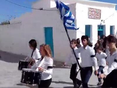 Οι μαθητές με τη συνοδεία των τυμπάνων, παρέλασαν καταχειροκροτούμενοι από το κόσμο του νησιού που παρακολούθησε τις εορταστικές εκδηλώσεις και που στις αρχές του μήνα τυλίχτηκε στο πένθος με τον άδικο χαμό της 10χρονης Σοφίας.