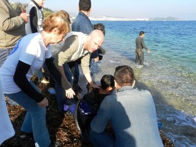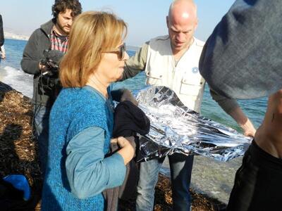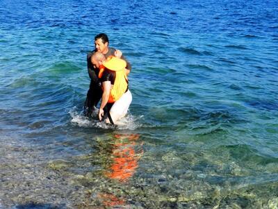 Την ώρα που η αυτοκινητοπομπή με τους δύο άνδρες περνούσε από τον παραλιακό δρόμο του αεροδρομίου, μια φουσκωτή βάρκα ερχόταν στο νησί γεμάτη πρόσφυγες. Η αυτοκινητοπομπή σταμάτησε στη θέα της βάρκας με τους πρόσφυγες και ο κόσμος – ανάμεσά τους και ο δήμαρχος του νησιού - βγήκε από τα αυτοκίνητα.