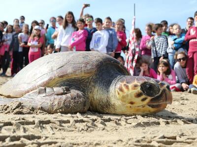 Η απελευθέρωση έγινε στην παραλία μπροστά από το Ενυδρείο παρουσία πλήθους παιδιών που ήρθαν για να τις αποχαιρετήσουν.