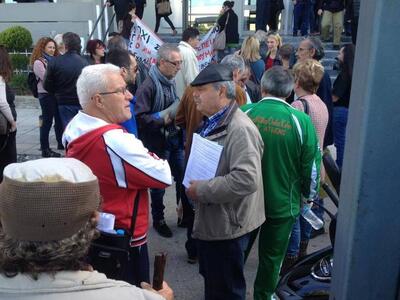Λίγο νωρίτερα μέλη του ΠΑΜΕ "εισέβαλαν" στο γραφείο του Διευθυντή της ΔΕΗ ζητώντας να σταματήσουν οι διακοπές ηλεκτροδότησης σε νοικοκυριά που αδυνατούν να αποπληρώσουν της οφειλές τους προς την επιχείρηση εξαιτίας της οικονομικής κρίσης που δεν τους το επιτρέπει.