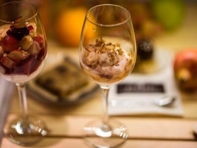 Σύκο, φράουλα, κεράσι, βίσινο από σπιτικά γλυκά Ιάμβη και πλήρης σειρά γλυκών κουταλιού της βιοτεχνίας Korona-Κατσιγιάννης. Επίσης θα βρείτε ροδοζάχαρη με τριαντάφυλλα από το Κτήμα Φούρα και την ειδική συνταγή του Στέλιου Αλεξόπουλου.