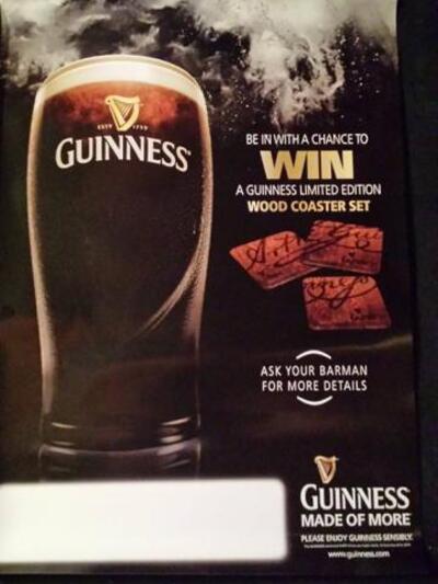 Έτσι, με την αγορά ενός ποτηριού Guinness κερδίζετε τρία ξύλινα συλλεκτικά σουβέρ με το λογότυπο της αγαπημένης σας μπύρας!