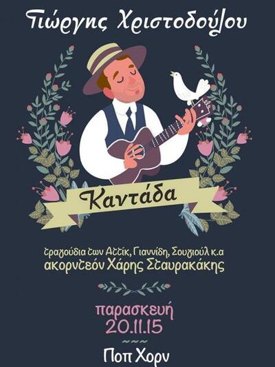 Ο Γιώργης Χριστοδούλου, τραγουδοποιός με οκτώ προσωπικά άλμπουμ και μια ξεχωριστή πορεία στην ελληνική αλλά και την ισπανική μουσική σκηνή, παρουσιάζει στο ΠΟΠ-ΧΟΡΝ τη νέα του δισκογραφική δουλειά με τίτλο Καντάδα, βασισμένη στα τραγούδια των Αττίκ, Σουγιούλ, Γιαννίδη, Ραπίτη κ.α.