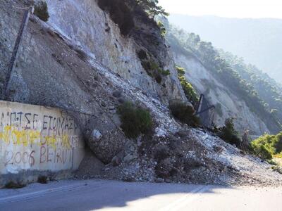 Από τα μέχρι τώρα επί τόπου στοιχεία που διερευνήθηκαν, προκύπτει ότι οι κυριότερες επιπτώσεις εντοπίζονται στο οδικό δίκτυο του νότιου και δυτικού τμήματος του νησιού και προέρχονται από καταπτώσεις βράχων και υποχωρήσεις εδαφικών μαζών.»
