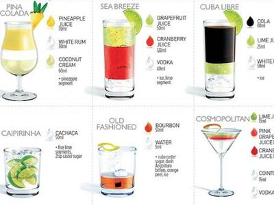 μπύρα,μπέρμπον,μπράντυ ή κονιάκ, τζιν, ρούμι, σάκε, τεκίλα, βότκα, ουίσκι ή κρασί.