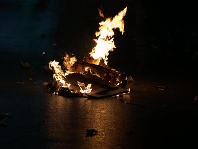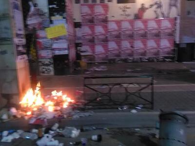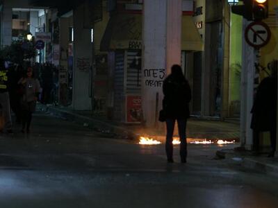 20.52 Δύο βιτρίνες "κατέβασαν" πριν από λίγο οι συγκεντρωμένοι αναρχικοί στο ύψος του παραρτήματος ενώ στη συνέχεια κατευθύνθηκαν στο ύψος της διασταύρωσης Κορίνθου και Γκότση όπου άναψαν φωτιές σε σκουπίδια από τα καλαθάκια που άδειασαν και τώρα κατευθύνονται προς το Πυροσβεστείο.