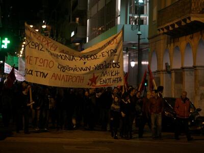 20.37 Πέτρες σε υποκατάστημα τραπέζης στην Κορίνθου μεταξύ Αγίου Νικολάου και Ερμού εκτόξευσαν πριν από λίγο αναρχικοί που βρίσκονται στην ουρά της πορείας Κορίνθου και Ερμού.