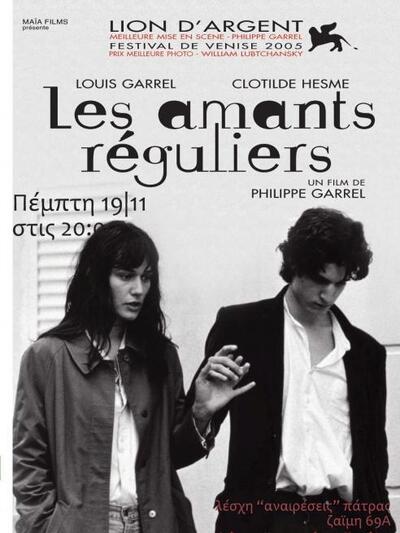 Les amants reguliers. Γαλλία, 2005. Σκηνοθεσία: Φιλίπ Γκαρέλ. Σενάριο: Φιλίπ Γκαρέλ, Αρλέτ Λανγκμάν, Μαρκ Σολοντένκο. Ηθοποιοί: Λουί Γκαρέλ, Κλοντίντ Εσμ, Ερίκ Ρουγιά. Διάρκεια - 178 λεπτά.