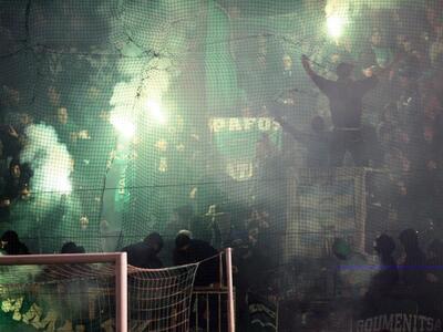 Δεκάδες καπνογόνα άναψαν, οι οπαδοί άρχισαν να αποδοκιμάζουν εν χορώ τον Σταύρο Κοντονή, ενώ οι δυνάμεις της αστυνομίας αναπτύχθηκαν περιμετρικά του γηπέδου με περισσότερες στο κέντρο του γηπέδου και προς την θύρα των οργανωμένων.