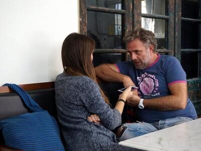 Δεν λέει τίποτα. Απλώς ακολουθεί με τον δικό του τρόπο. Ζωγραφίζει, παίζει μουσικά όργανα, τραγουδάει πολύ ωραία, έχει γνώμη πάνω στα τραγούδια. Λατρεύει τον Τζίμη Πανούση.